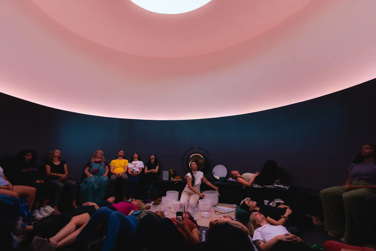 Sound healer Sonic Starchild (Jen Vu) returns to the Skyspace this spring for Wellness Wednesdays, a sound bath series hosted inside James Turrell's The Color Inside.