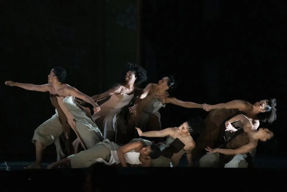 Taking the stage as part of the Urban Bush Women dance ensemble, Love Muwwakkil (M.F.A. 2023) performs in Houston Grand Opera's world premiere of Intelligence, directed and choreographed by Jawole Willa Jo Zollar