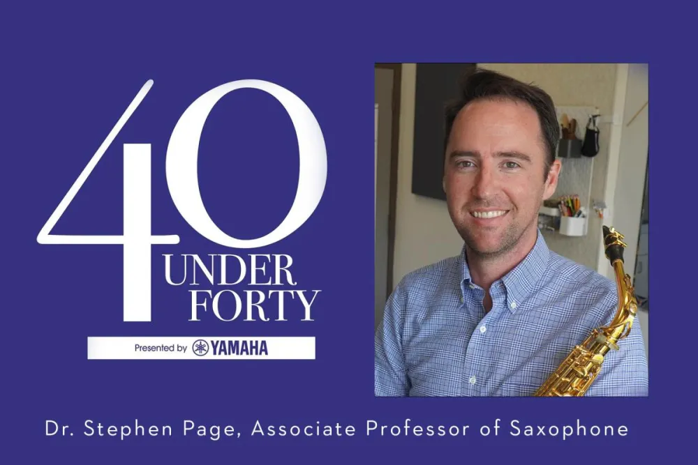 News & Events News All News Arts Next Magazine Alumni News Social Media Directory Events All Events Season Ticket Subscriptions Stephen Page chosen as one of Yamaha's 40 Under 40 recipients May 23, 2024 Stephen Page, Associate Professor of Saxophone at the Butler School of Music, received recognition as one of Yamaha's "40 Under 40" recipients SHARE Read Article: Butler School of Music TAGS Music Read More News