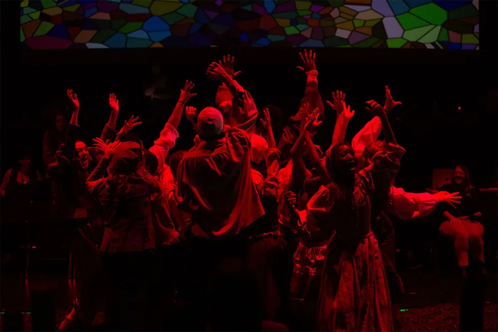 Choreomaniac 1518, written by Malena Pennycook, a third-year M.F.A. in Theatre (playwriting) candidate, was one of two plays fully produced and presented in the Oscar G. Brockett Theatre for the UT New Theatre (UTNT). Created in 2007, UTNT is an annual festival that presents newly developed works from third-year playwrights in the M.F.A. in Playwriting program of the Department Theatre and Dance and Michener Center for Writers. Produced by Artistic Director Alexandra Bassiakou Shaw, the 2023/2024 UTNT lineup contained two readings and two fully staged performances.