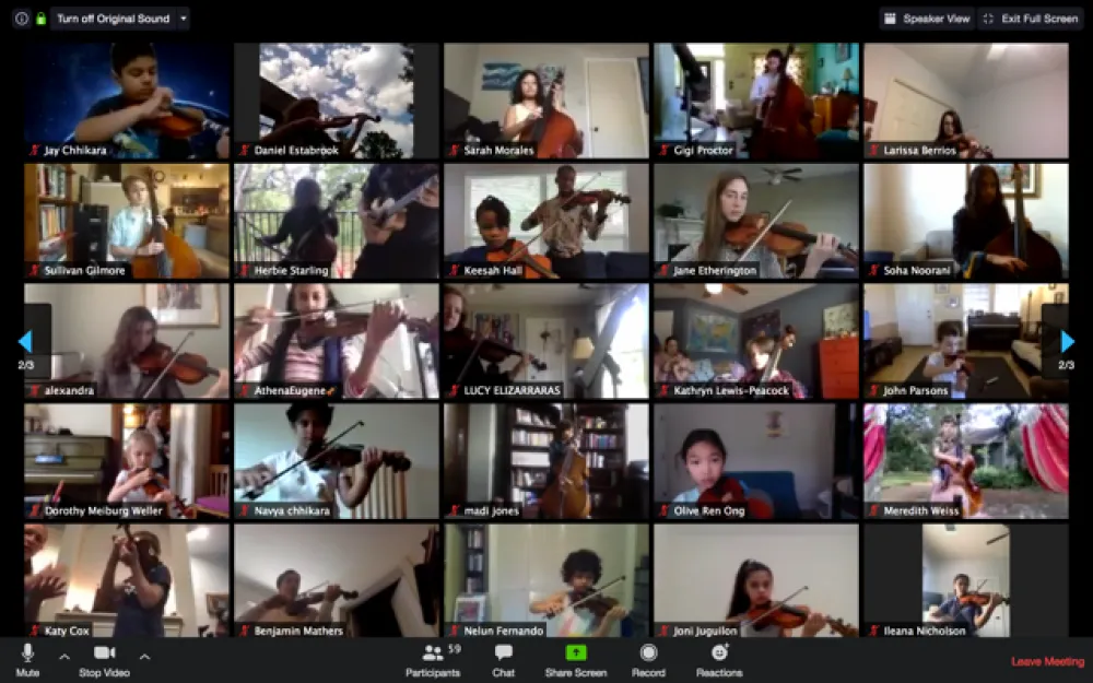 Teaching young children in a virtual format presented its own set of challenges for teachers. For one, the social distancing makes instruction on a string instrument quite difficult./p